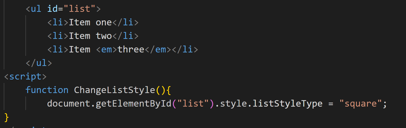 </html>JavaScript function changeColor(newColor) { const elem = document.getElementById("para"); elem.style.color = newColor; }
