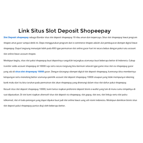 Slot Deposit shopeepay sebagai Bandar situs slot deposit shopeepay 10 ribu aman dan terpercaya. Situs slot shopeepay lewat program shopee amat gacor sampai detik ini.