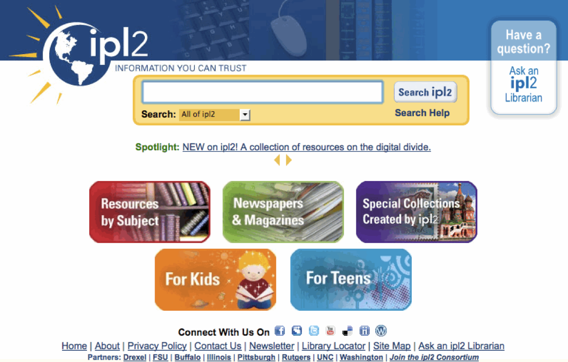 Online communities- iPL2, or the Internet Public Library, “is a public service organization and a learning/teaching environment. To date, thousands of students and volunteer library and information science professionals have been involved in answering reference questions"