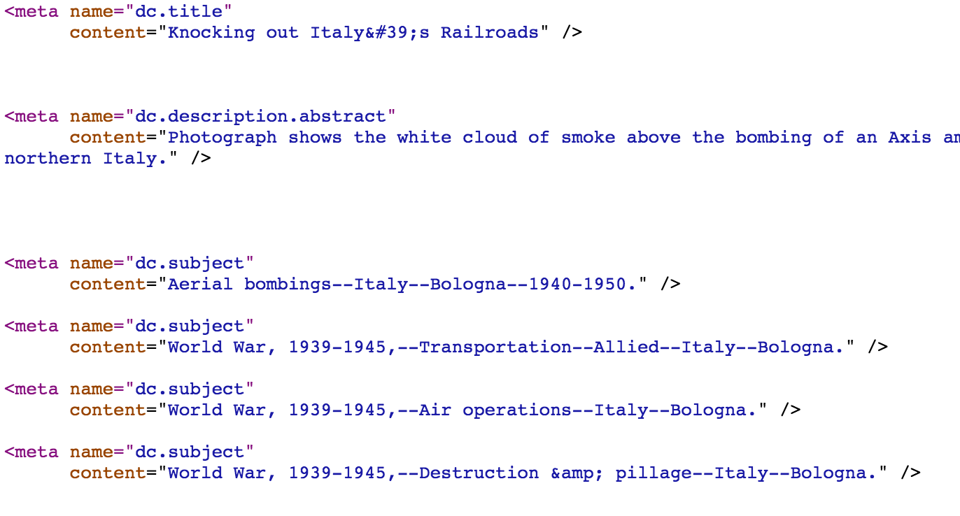 There are many different metadata standards that use different rules in the way different pieces of data can be described, such as Dublin Core, MODS, METS.