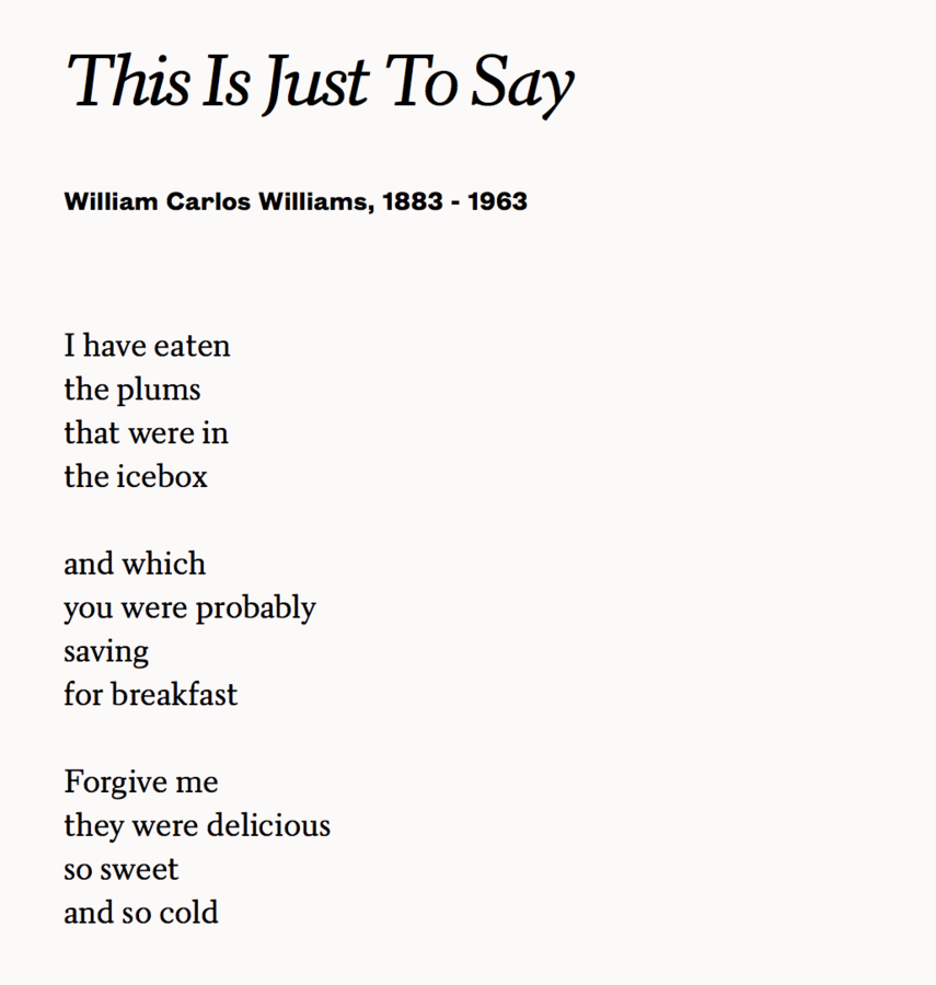 How could we start drawing out some models/how we could start laying out a database that would house data about these poems of William Carlos Williams