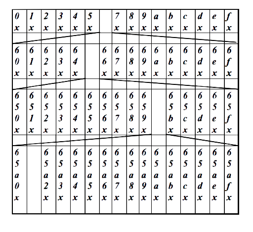 Partizioni delle formule possibili. Le formule in due partizioni diverse sono indipendenti tra loro