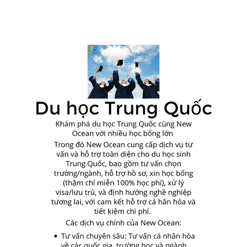 Website: https://newocean.edu.vn/. Công ty Tư Vấn Du Học New Ocean là địa chỉ tư vấn du học uy tín gần 20 năm kinh nghiệm cho sinh viên, học sinh Việt Nam có nhu cầu đi du học nước ngoài. Email: info@newocean.edu.vn Văn phòng Hà Nội: New Ocean Buildi