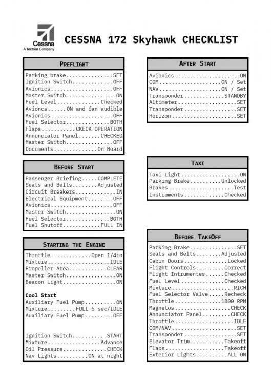 - Flow Pattern: Move through the flight deck in a logical sequence without the checklist, then check the list afterward to confirm each item is complete.