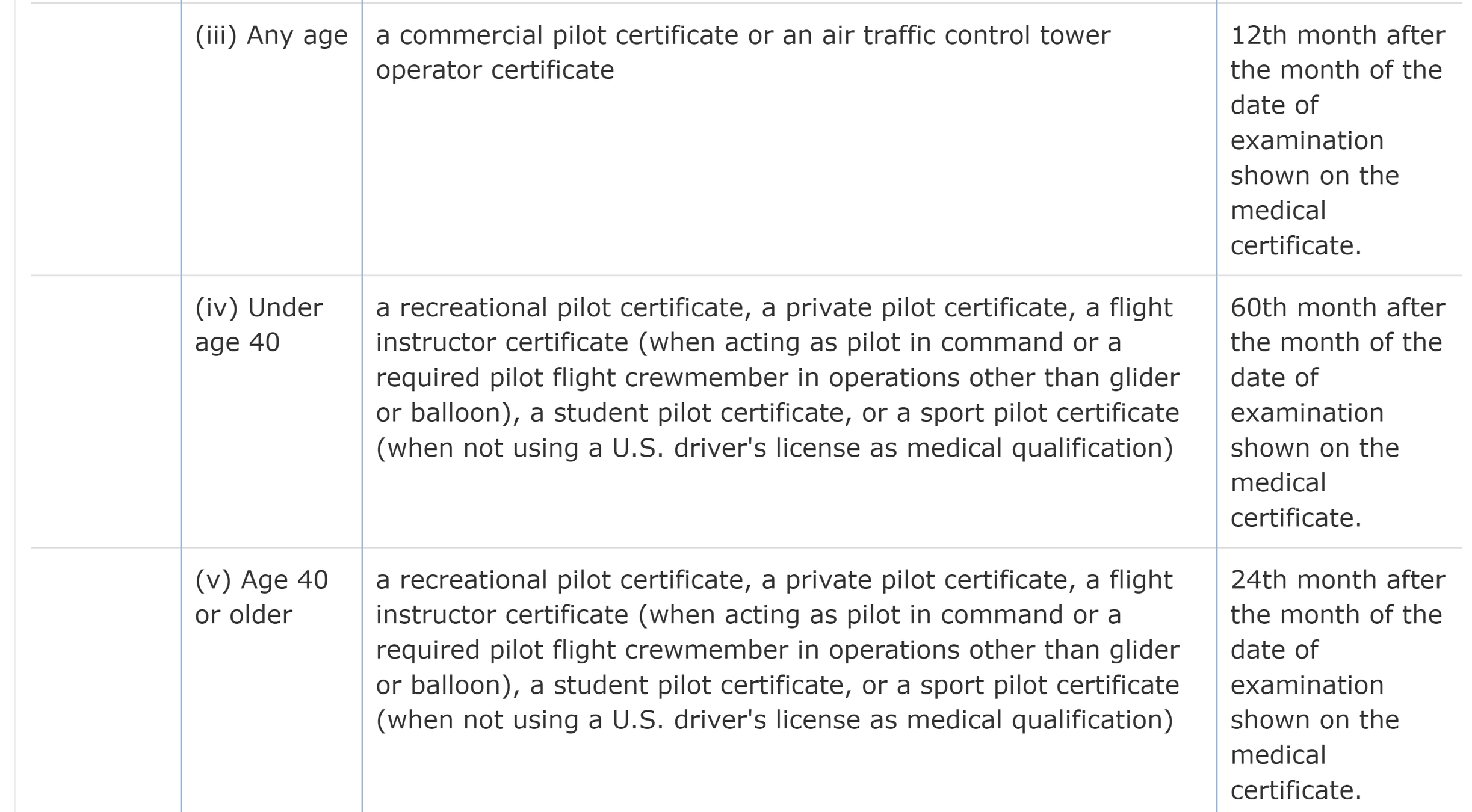 Remember, the duration depends upon the privileges that the pilot is exercising.