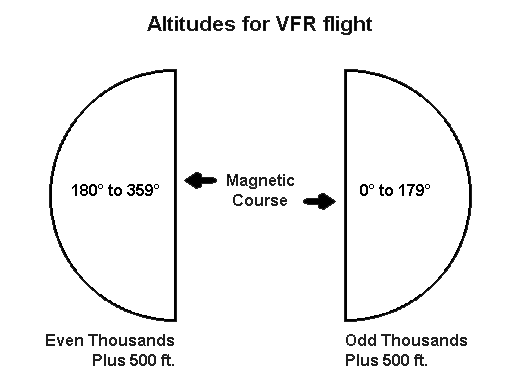 - VFR aircraft on magnetic courses from 0° to 179° fly at odd thousand-foot altitudes plus 500 feet,