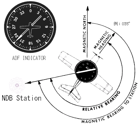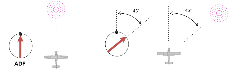 A procedure during which you always keep the nose of the aircraft pointing directly to the station is called homing to the station. To fly to an NDB using the homing procedure simply turn to position the head of the ADF needle on the aircraft’s nose