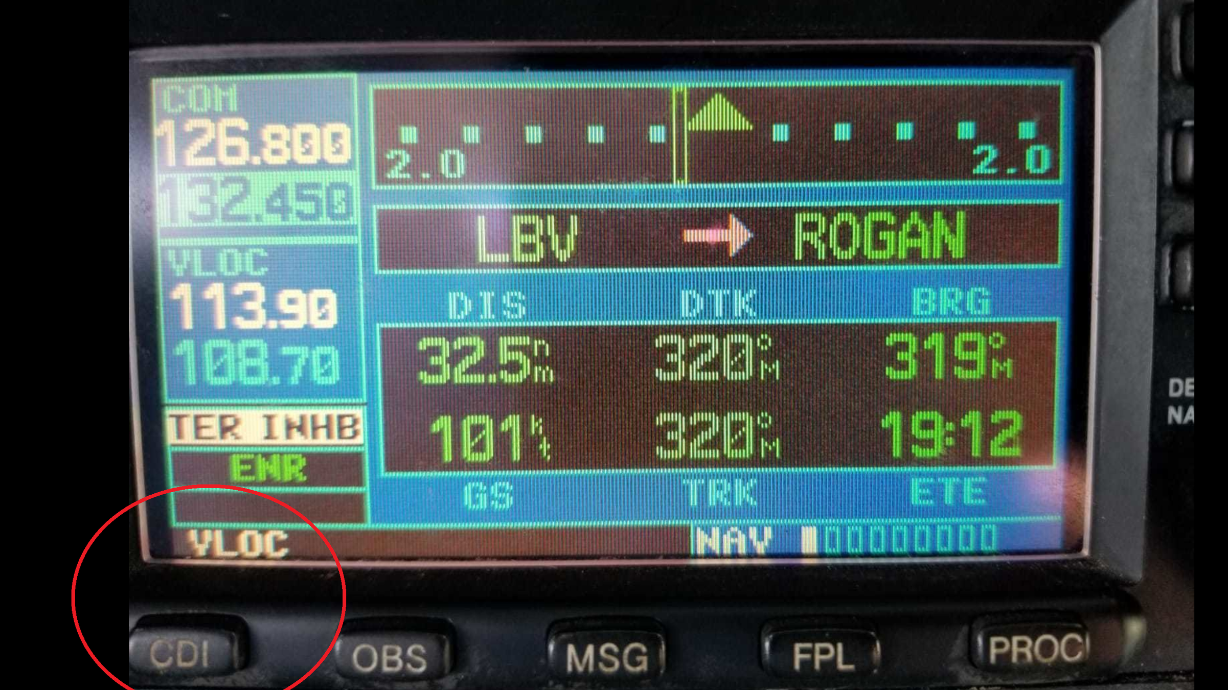 Press the CDI button to change the VLOC mode to the GPS mode.