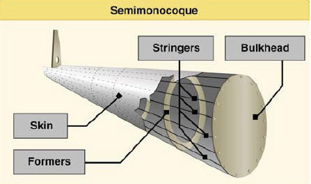 Reinforced Design: A semi-monocoque fuselage combines a load-bearing outer skin with internal structures like frames and stringers for added strength.