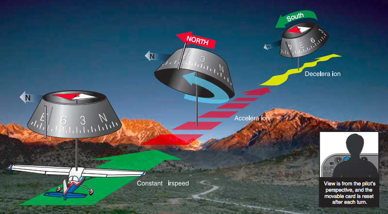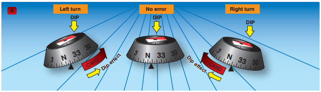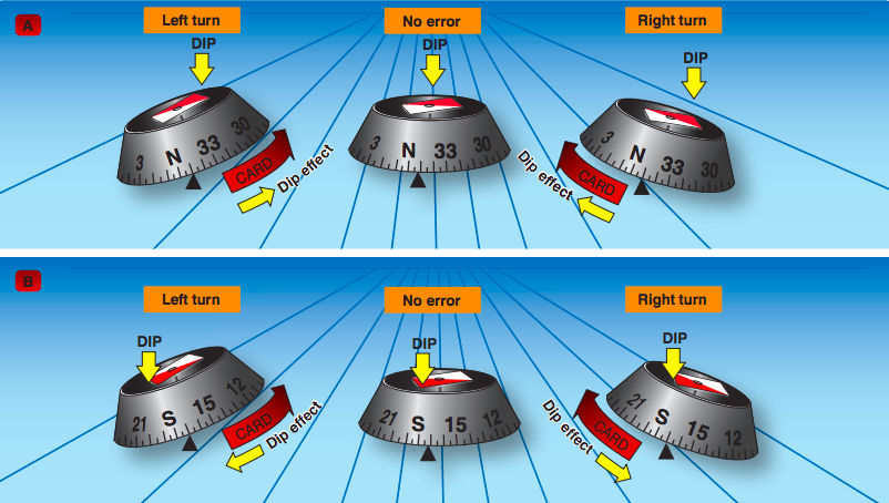- The magnetic dip and the forces of inertia cause magnetic compass errors when accelerating and decelerating on easterly and westerly headings.