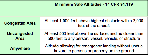 - Except when necessary for takeoff or landing, no person may operate an aircraft below the following altitudes:
