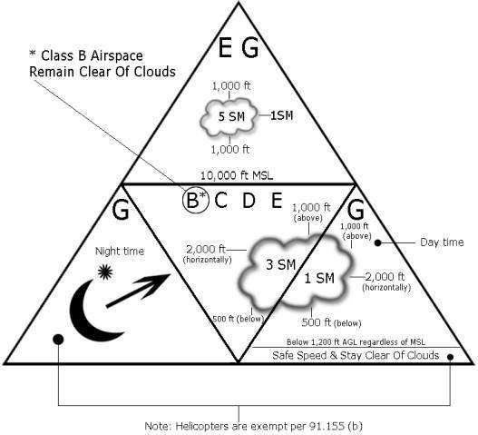 - Be at least 1,500 ft above ground level and have at least 3 statute miles of visibility.