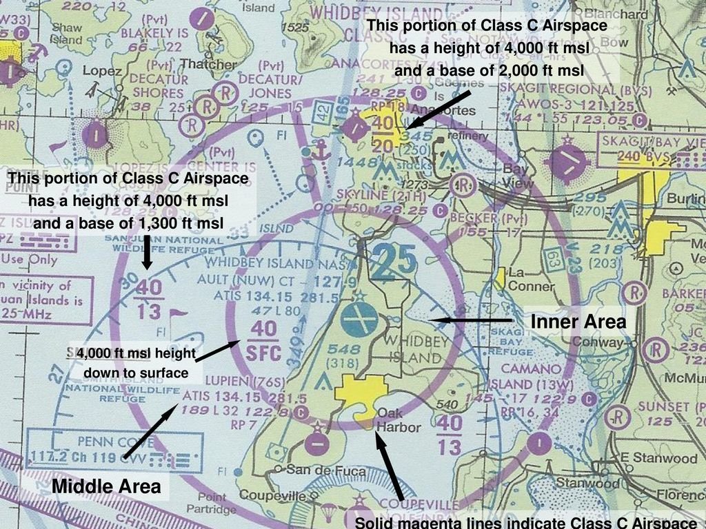 - Class C or D airspace or below 2,500' above the surface, and within 4 NM from primary airport