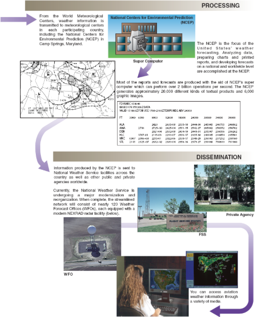 - From the compilation of the weather data until a final forecast is disseminated, the information is passed among various agencies for processing, analysis, and creation of weather charts, graphics, and text.