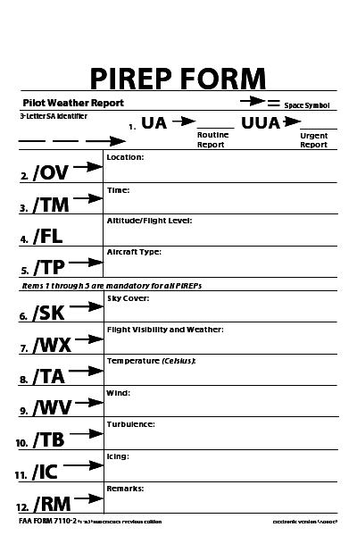 - Two types of PIREPs: Routine (UA) or Urgent (UUA)