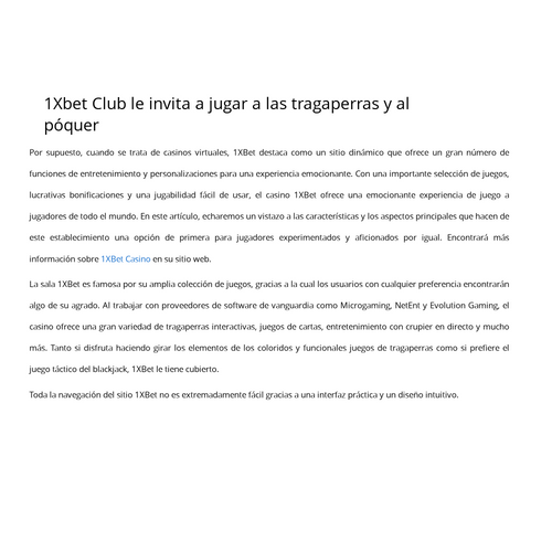 1Xbet Club le invita a jugar a las tragaperras y al póquer