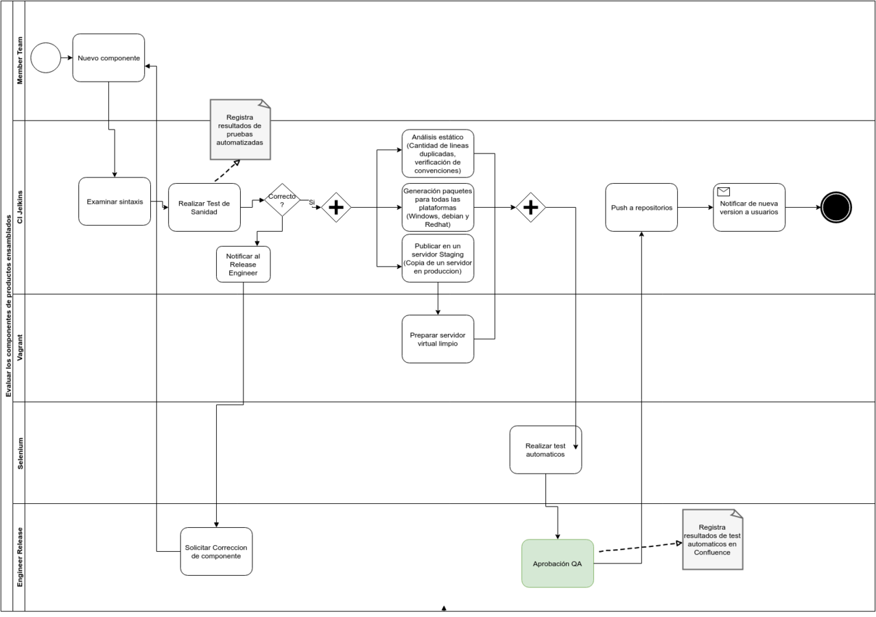 - Ejecucion de tareas automatizadas de integracion. No se verifica la integridad entre los componentes emsamblados.