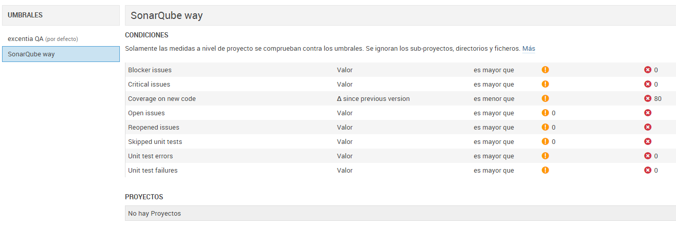 Coverage on new code: Cobertura de pruebas sobre el nuevo código. No Investigarlo