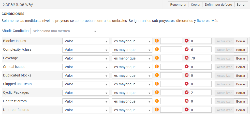 A continuación los Quality Gates actuales del equipo: