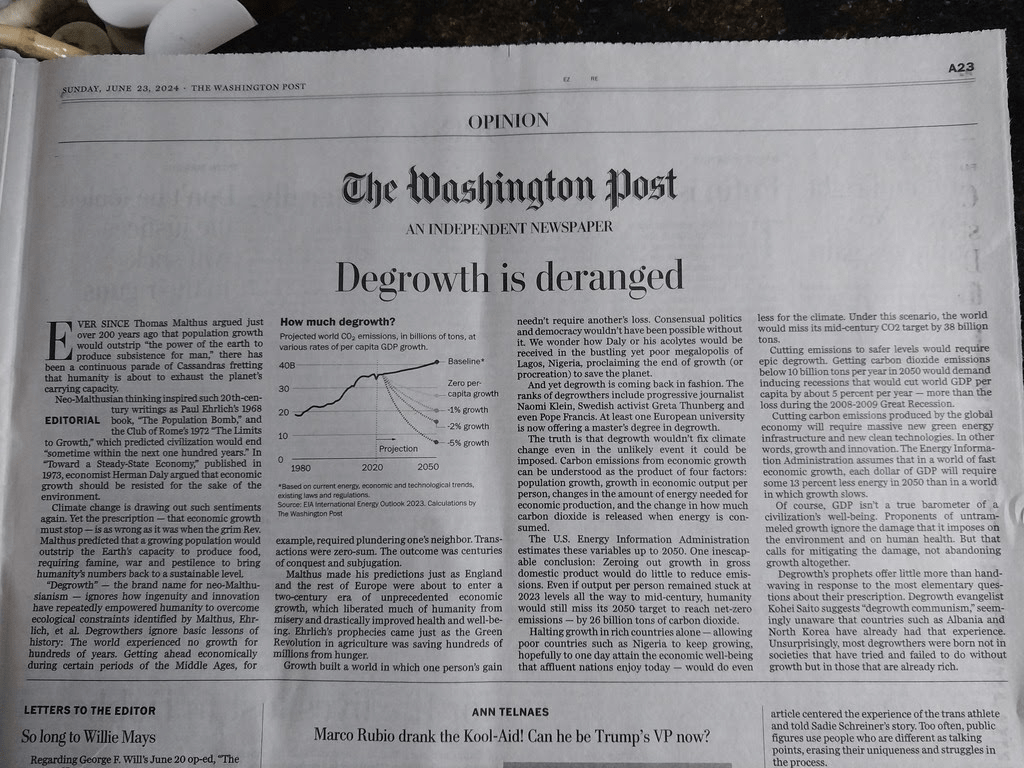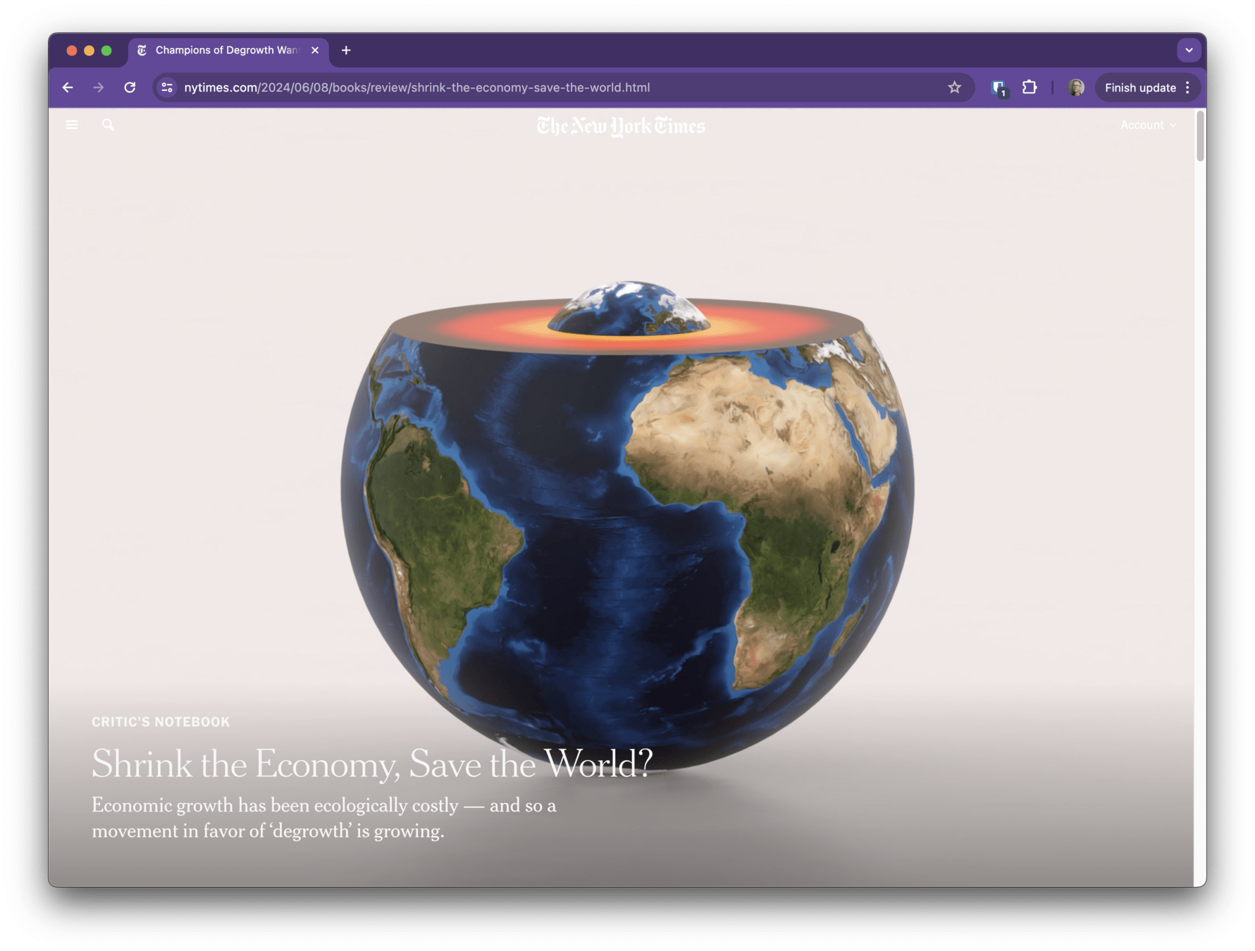 Degrowth is a planned reduction of energy and resource use designed to bring the economy back into balance with the living world in a way that reduces inequality and improves human well-being.