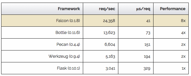 1. falcon.........25,638 req/sec or 39.00 μs/req (6x)
