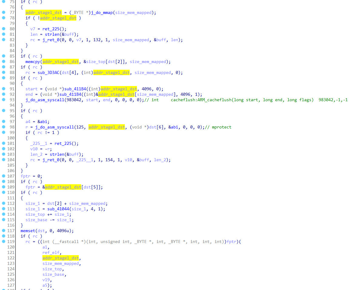 After mmap use the return ptr as STAGE1 baseaddr