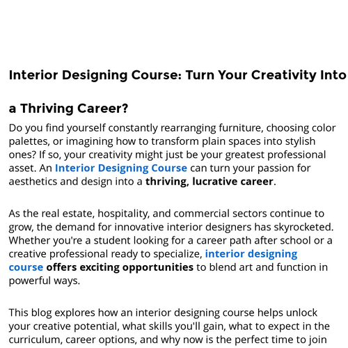 Elevate your creativity with our comprehensive interior designing course. Learn essential skills and techniques to transform spaces into stunning environments.