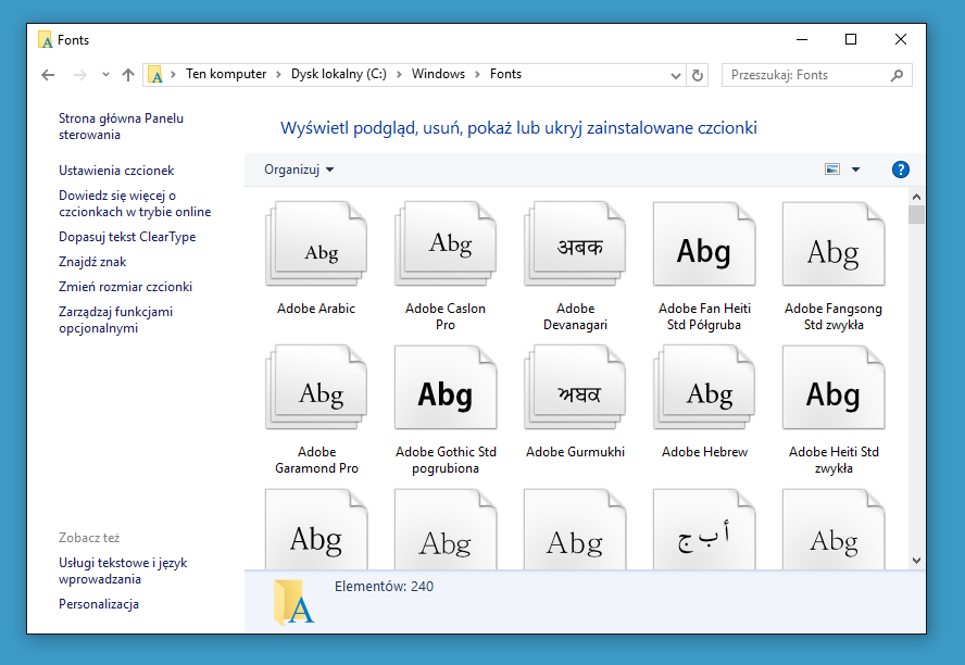Fonty, które renderuje przeglądarka, są domyślnie zaczytywane z systemu użytkownika, co oznacza, że muszą być zainstalowane, aby poprawnie wyświetlały się na stronie WWW.