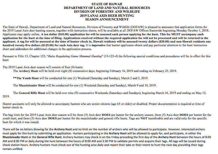 2019 Lanai Axis Deer Announcement