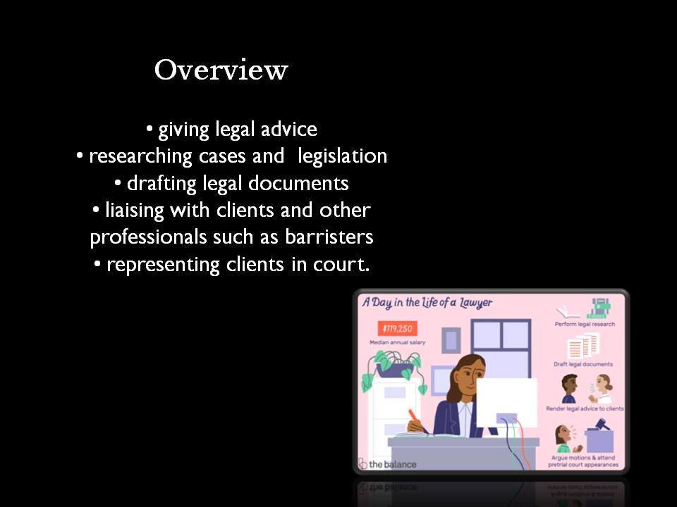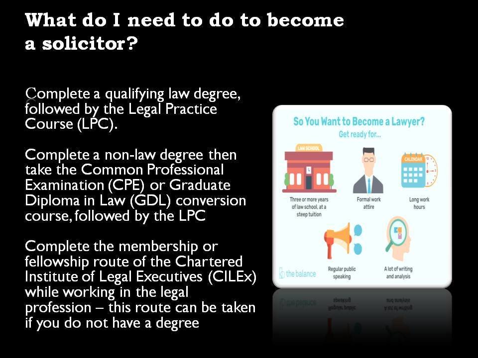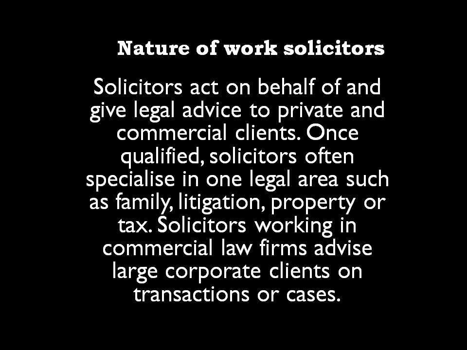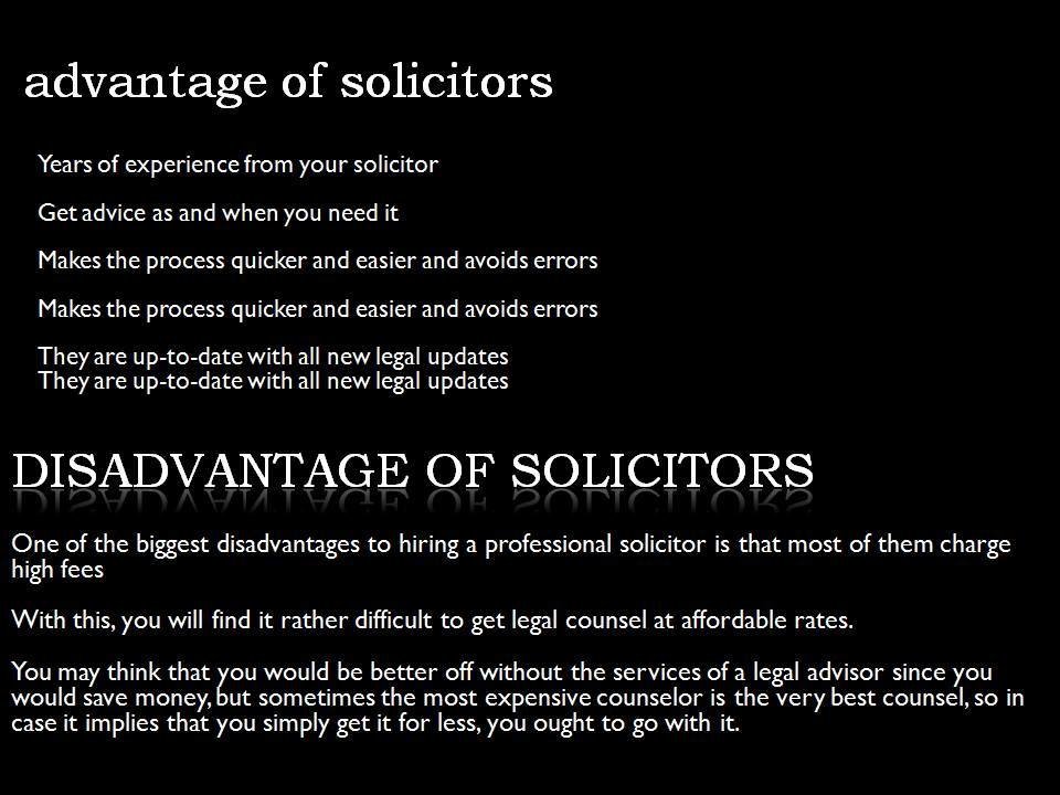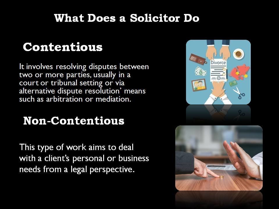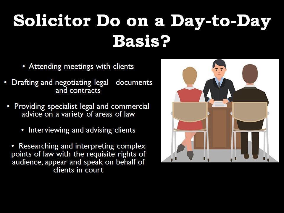 A solicitor is a qualified legal counselor who has personal contact with his clients, joining legal expertise.