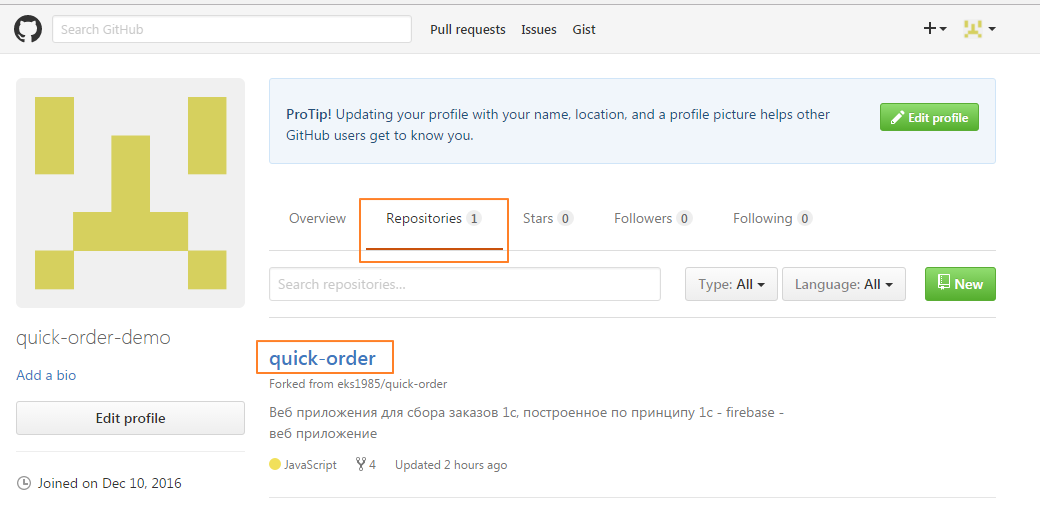 Сделайте форк проекта. Это создаст клон quick-order и поместит его в ваши проекты