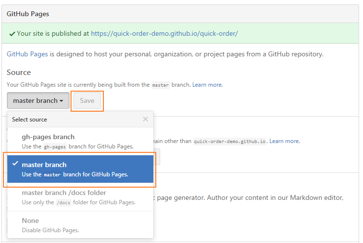 Перейдите в настройки и в блоке GitHub Pages выберите в качестве Source ветку master
