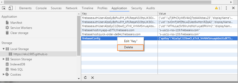 В случае если вы захотите отвязать веб приложение от экземпляра firebase просто удалите строку с настройками из localStorage и перезагрузите страницу