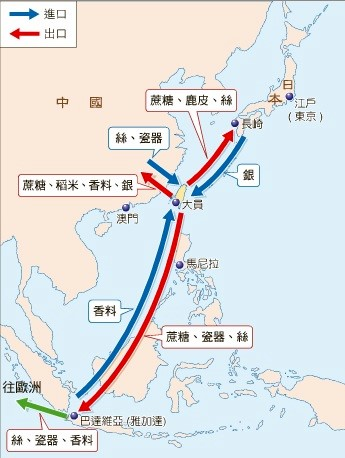 目的:貿易,對象為中國、日本、東南亞,形成全球的貿易網路。