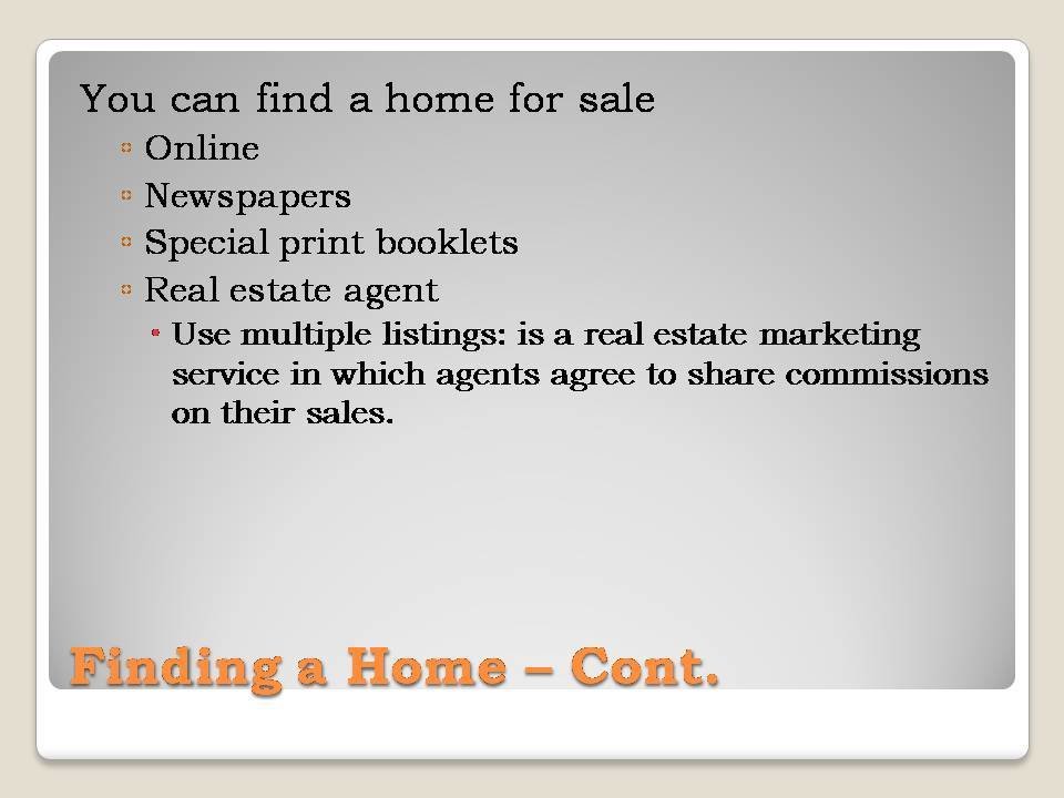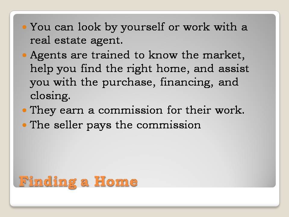 Agents are trained to know the market, help you find the right home, and assist you with the purchase, financing, and closing.