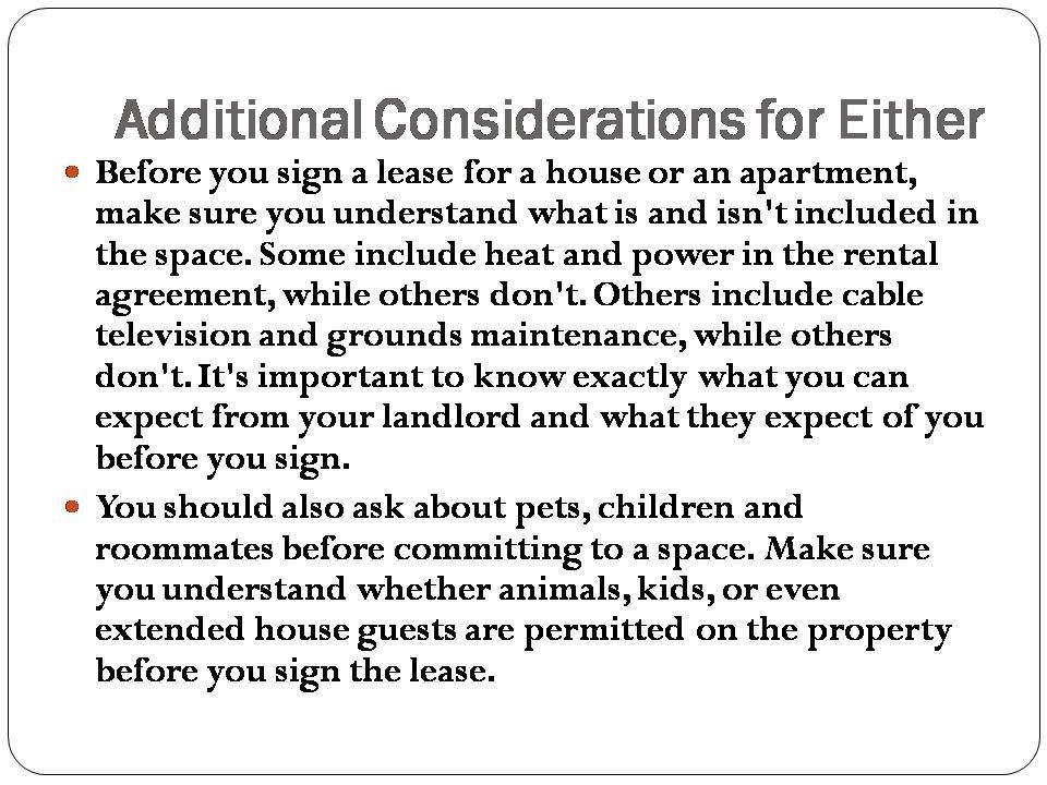 While many apartments come with a parking spot, a large number of urban apartments, particularly older buildings, don't. If you have a vehicle or two, you may want to look at renting a home with parking.