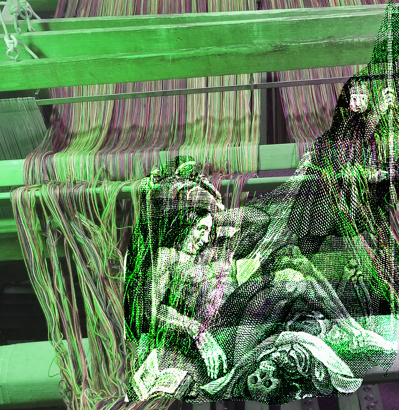 Background image created by the author from a loom on Reddit and the frontispiece illustration of Frankenstein (1831)