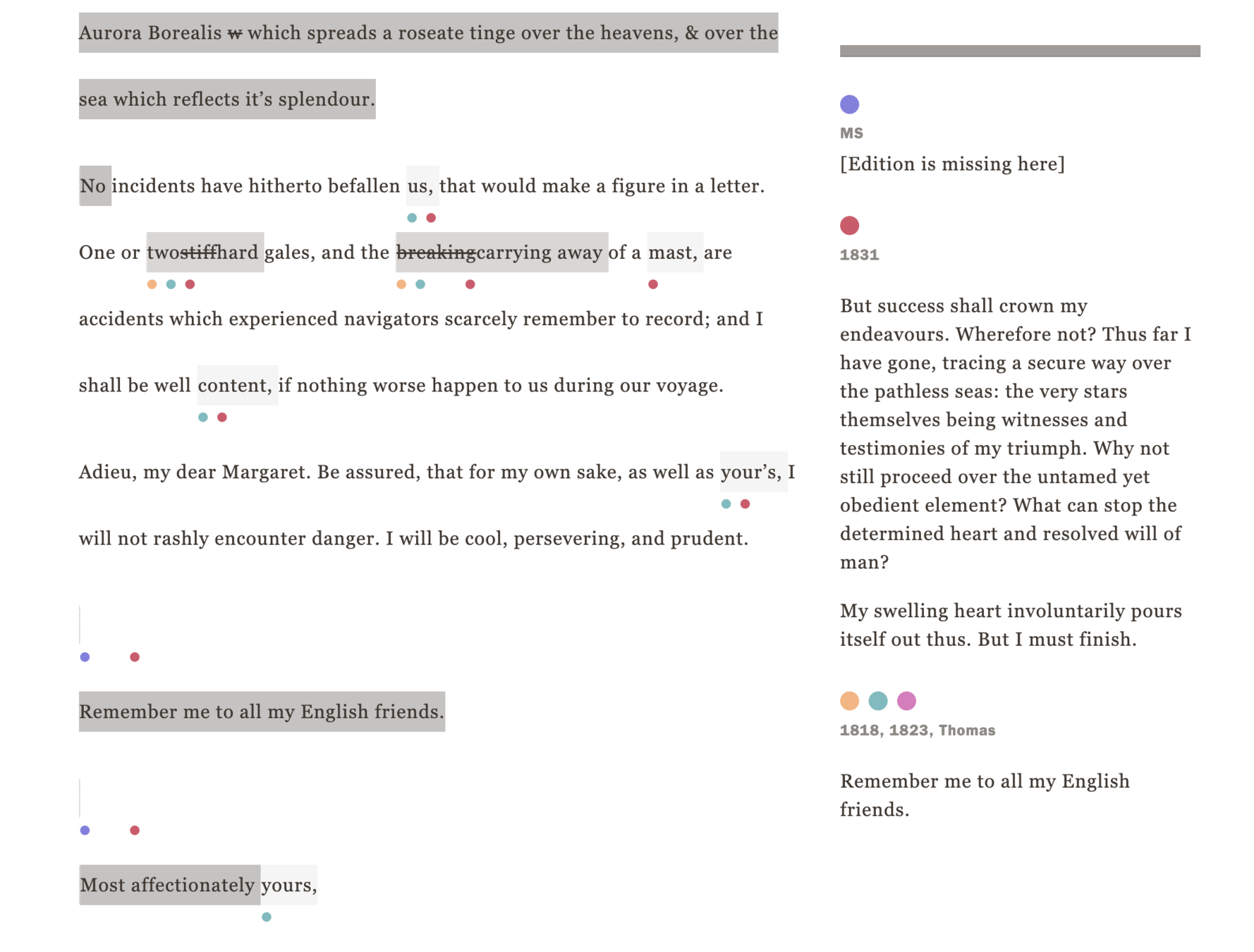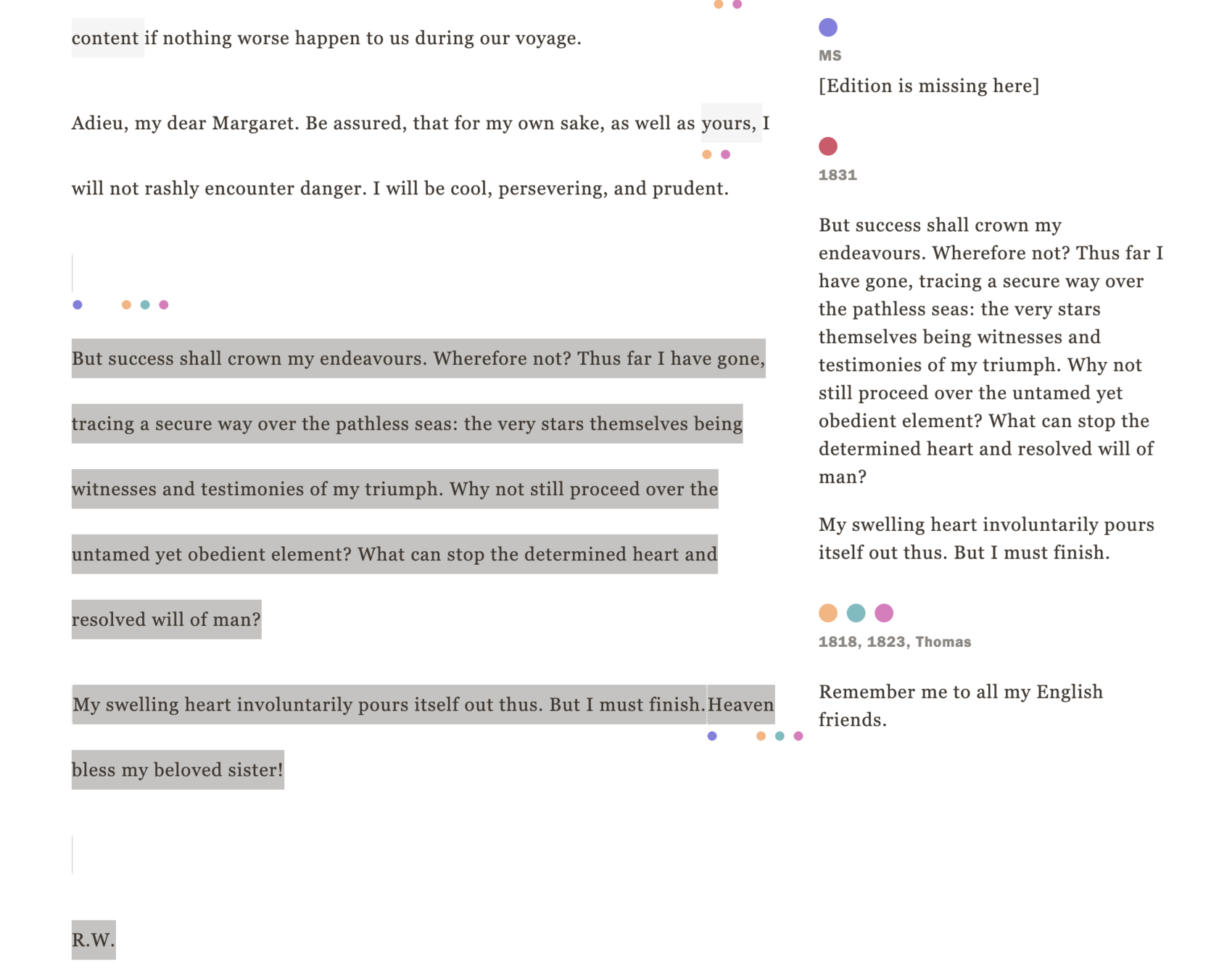 2. Introduce textual scholarship to students, fans of Frankenstein as well as text scholars, 19c specialists: