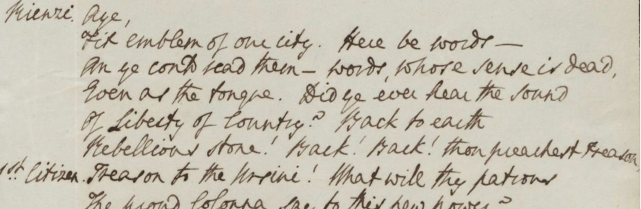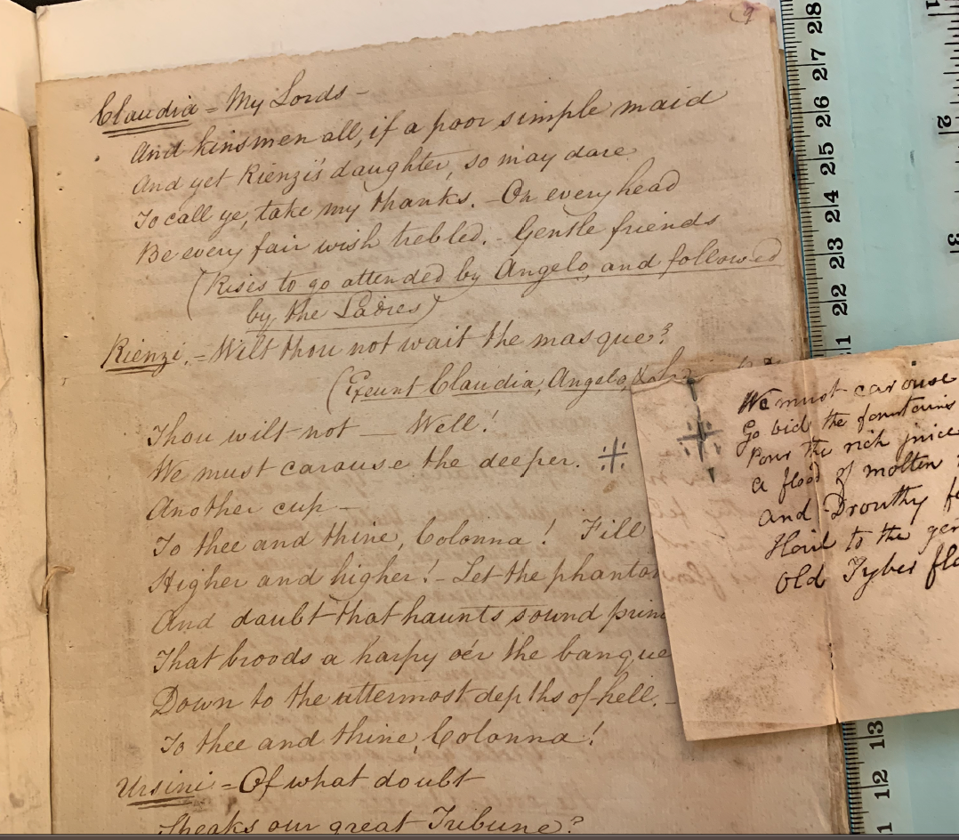 a slide presentation on Mary Russell Mitford's Rienzi as it was altered for performance for Drury Lane theater in London in 1828.