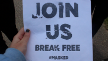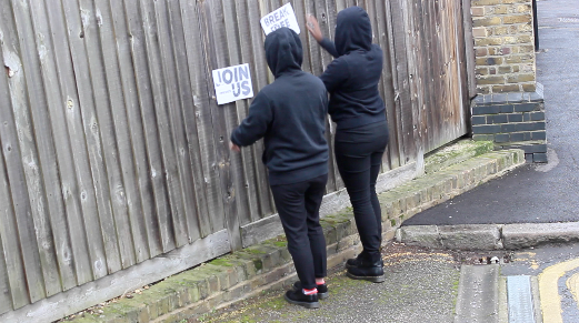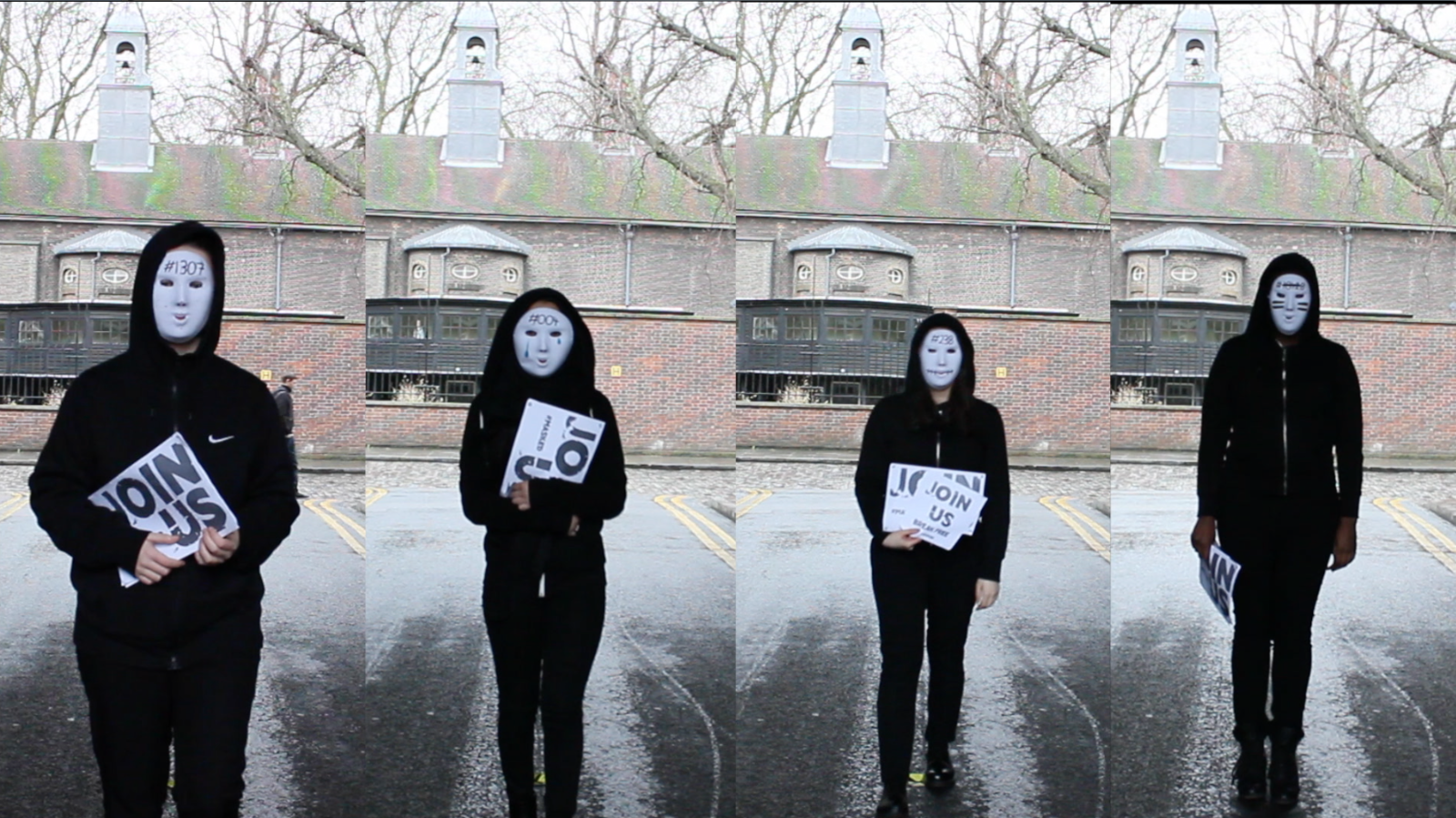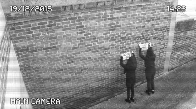We also had specific posters made that read either 'JOIN US' or 'BREAK FREE.' In the video we had characters placing these around walls.