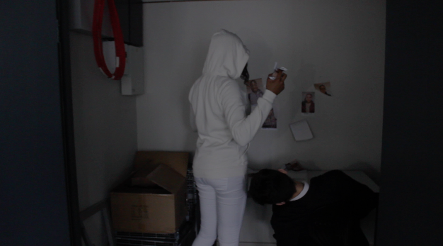 During this scene we wanted to have the masked characters walking towards and staring at the camera, we thought that it would have