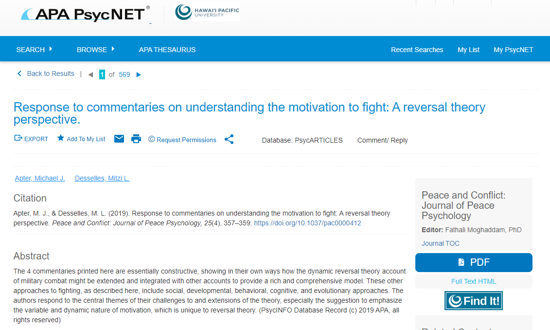 Find one of the following sources and find the APA 7th citation provided in database; compare it to handout note any mistakes make changes.