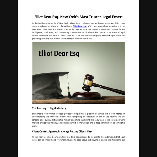 Elliot Dear Esq is a distinguished lawyer who has earned the trust and respect of clients and peers alike. He is known for his commitment to providing effective legal solutions to clients facing a range of challenges. With his exceptional skills and