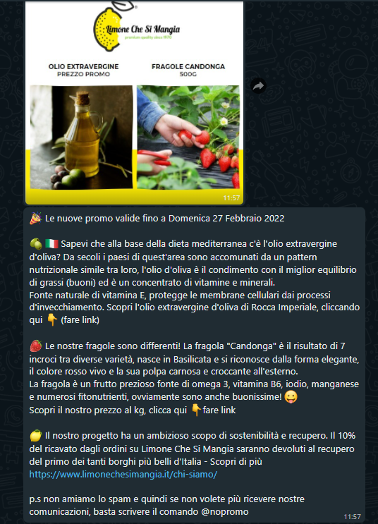 Promozione - olio d'oliva e fragole