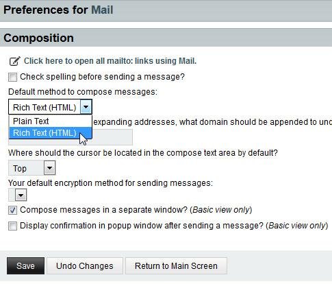 Navigate to the dropdown menu beneath "Default method to compose messages:" and select Rich Text (HTML).