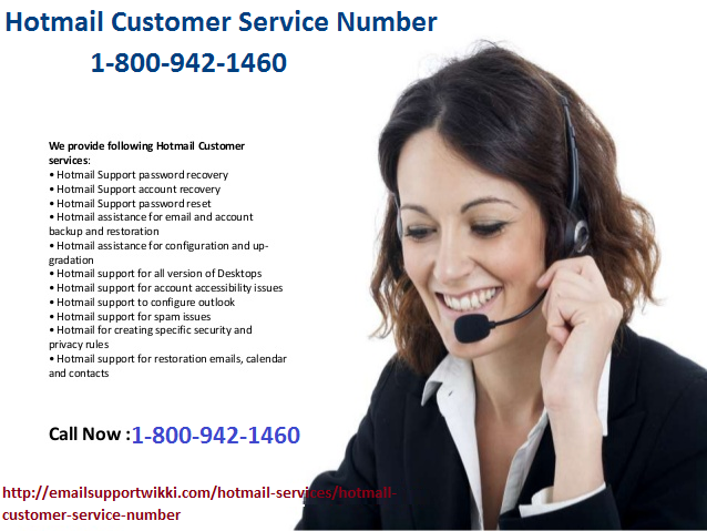Need Hotmail Customer Service Number for Hotmail password Recovery? Call 1-800-942-1460 for any technical help in Hotmail account. Visit http://emailsupportwikki.com/hotmail-services/hotmail-customer-service-number for more detail!