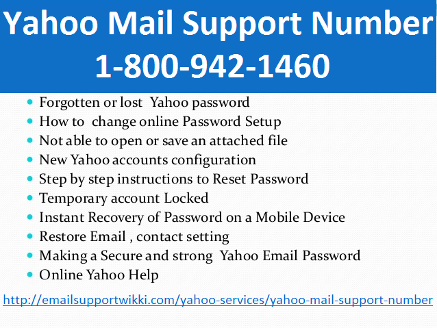 If your Yahoo Mail is not working or not responding and you are looking for instant Technical Solution, call 1-800-942-1460 Yahoo Mail Support Number for instant help. Visit http://emailsupportwikki.com/yahoo-services/yahoo-mail-support-number for more detail.