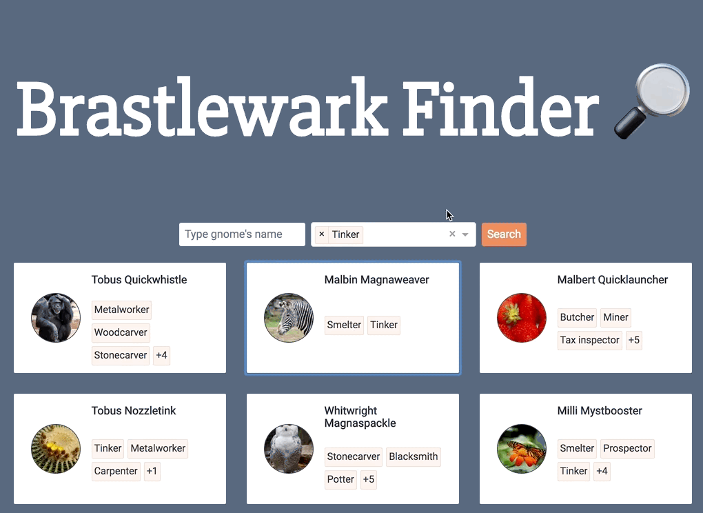 }const getGnomes = () => fetch('gnomeURL'); //will return the whole list of gnomes
