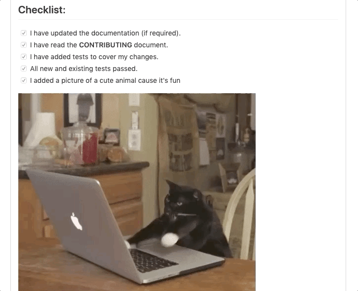 Document what's expected from a PR. Create a PR checklist.
