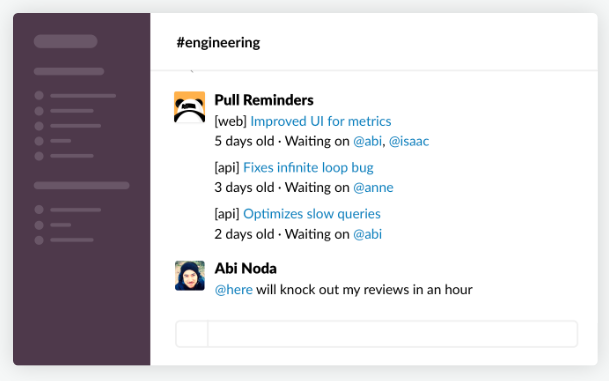 - PullPanda: https://pullreminders.com/Β (in the process of being integrated by Github)